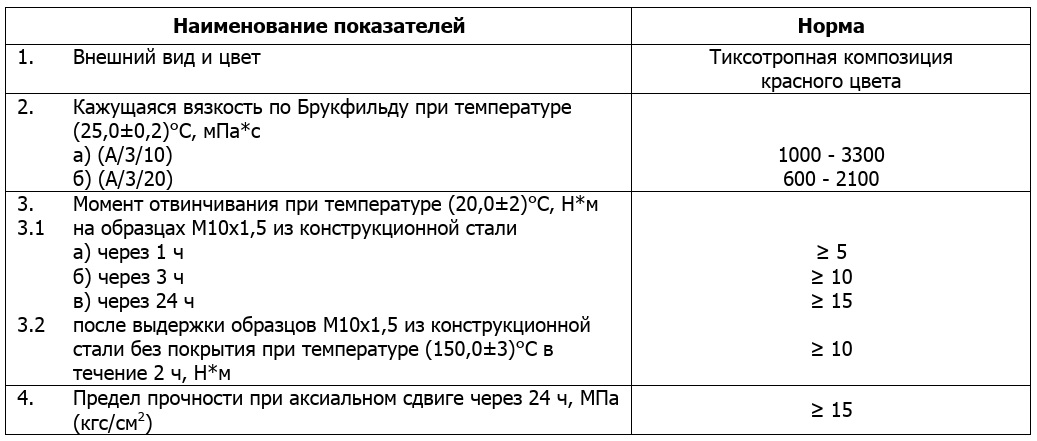 Тиксотропный герметик обеспечивает среднюю (М6-М16, ≤G⅜”) и высокую (М20-M24, G½”-G¾”) прочность. Для нестандартной и сорванной резьбы допускается зазор ≤0,25 мм. В линиях гидравлики и пневматики рабоче давление ≤250 атм.